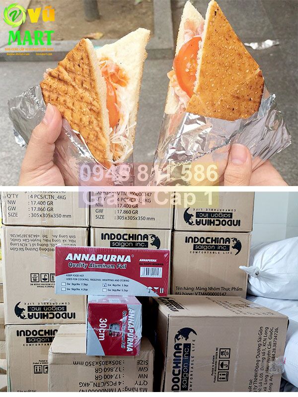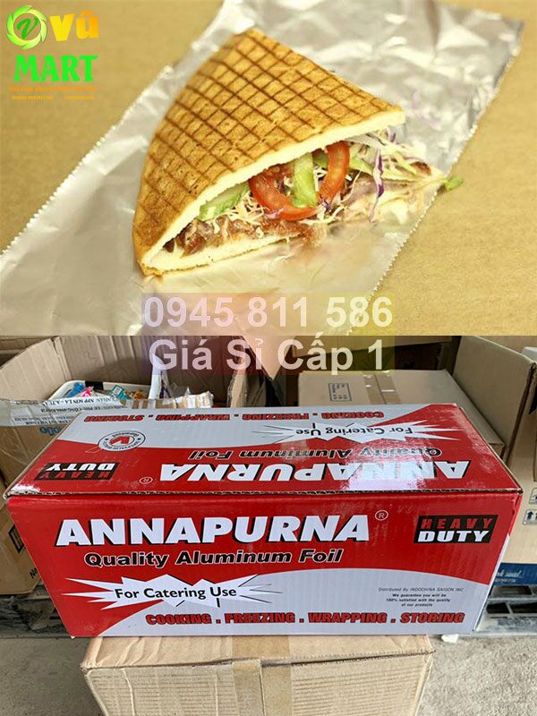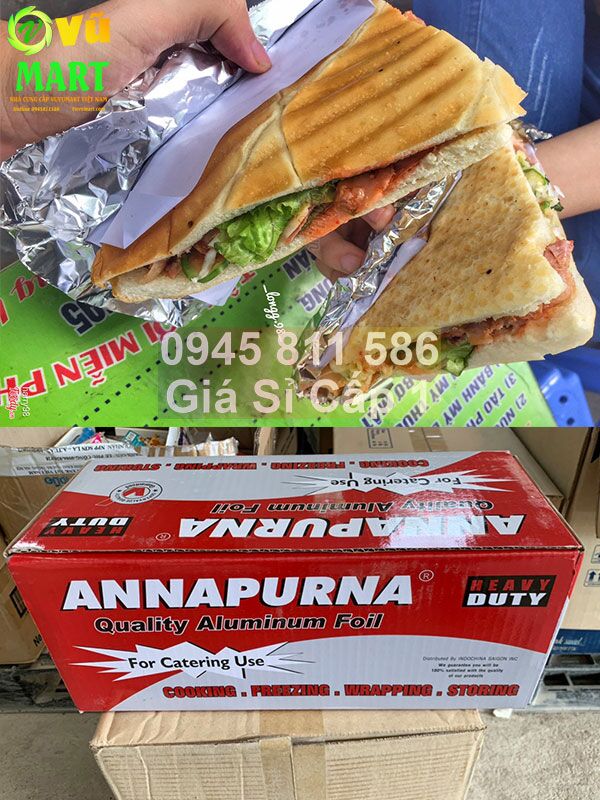 Giấy Bạc Nướng 3 kg – màng nhôm thực phẩm loại 1 của Annapurna, Goodfoil, Lộc Tự, được nhập khẩu và phân phối bởi Vuvumart.